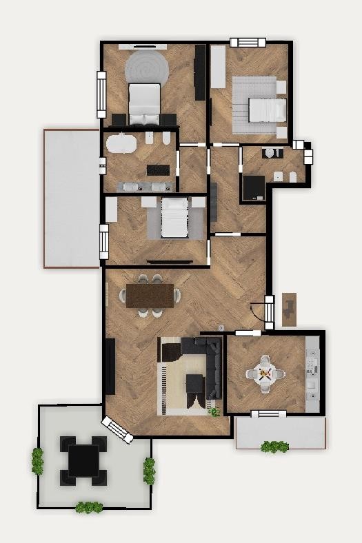 L'appartamento, si sviluppa su una metratura generosa ed è composto, da un ampio soggiorno ideale per momenti in famiglia, due terrazzini, una spaziosa cucina abitabile perfetta per chi ama cucinare, tre camere da letto, e i doppi servizi entrambi finestrati.
