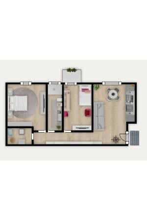 La distribuzione interna è funzionale e ben organizzata e comprende due camere da letto di cui una con uscita su balcone, un bagno finestrato e un ampio e comodo ripostiglio, perfetto come spazio lavanderia o per ottimizzare l'organizzazione della casa.
